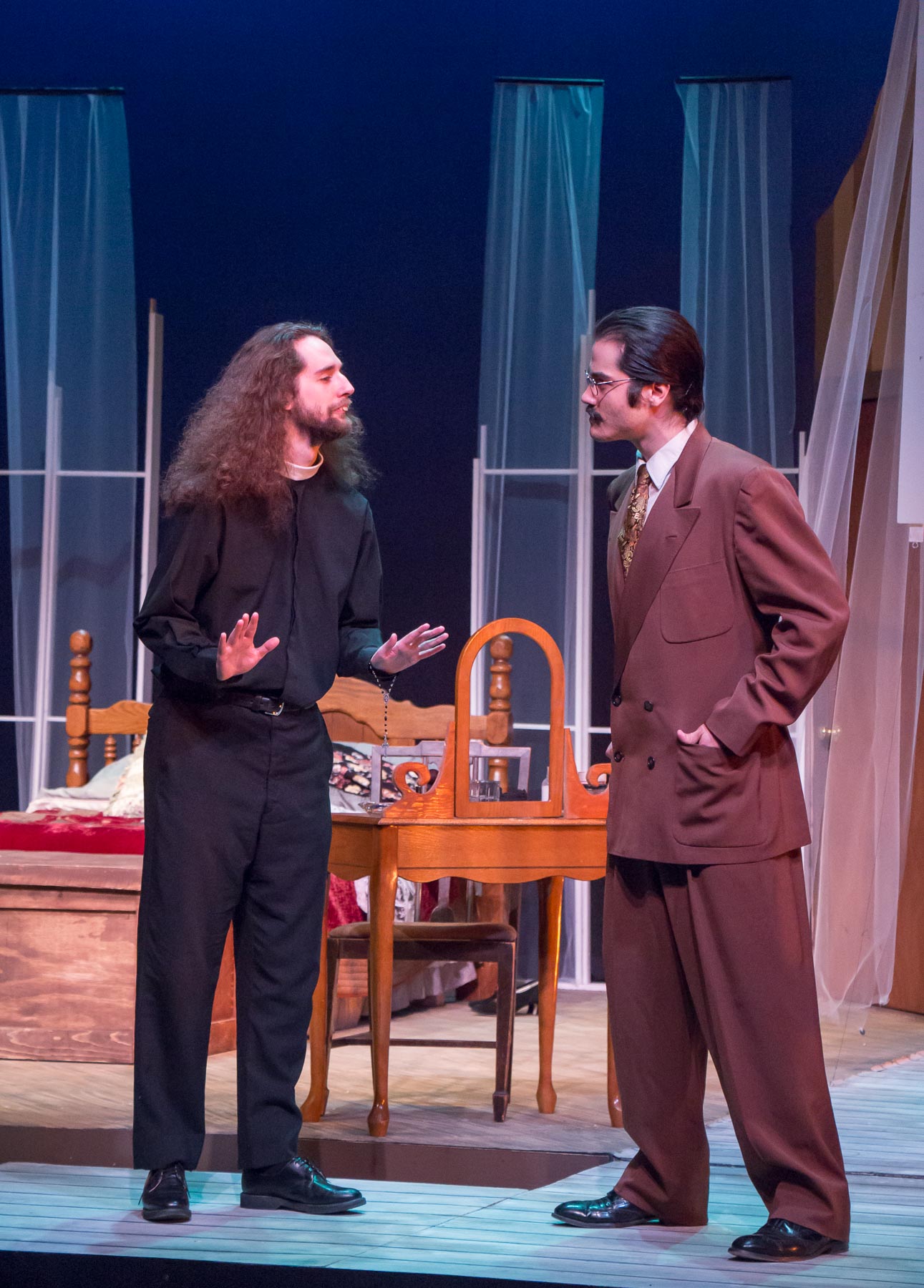 Left to right: Sam Thompson as Reverend Tooker and Thomas Petrie as Gooper.