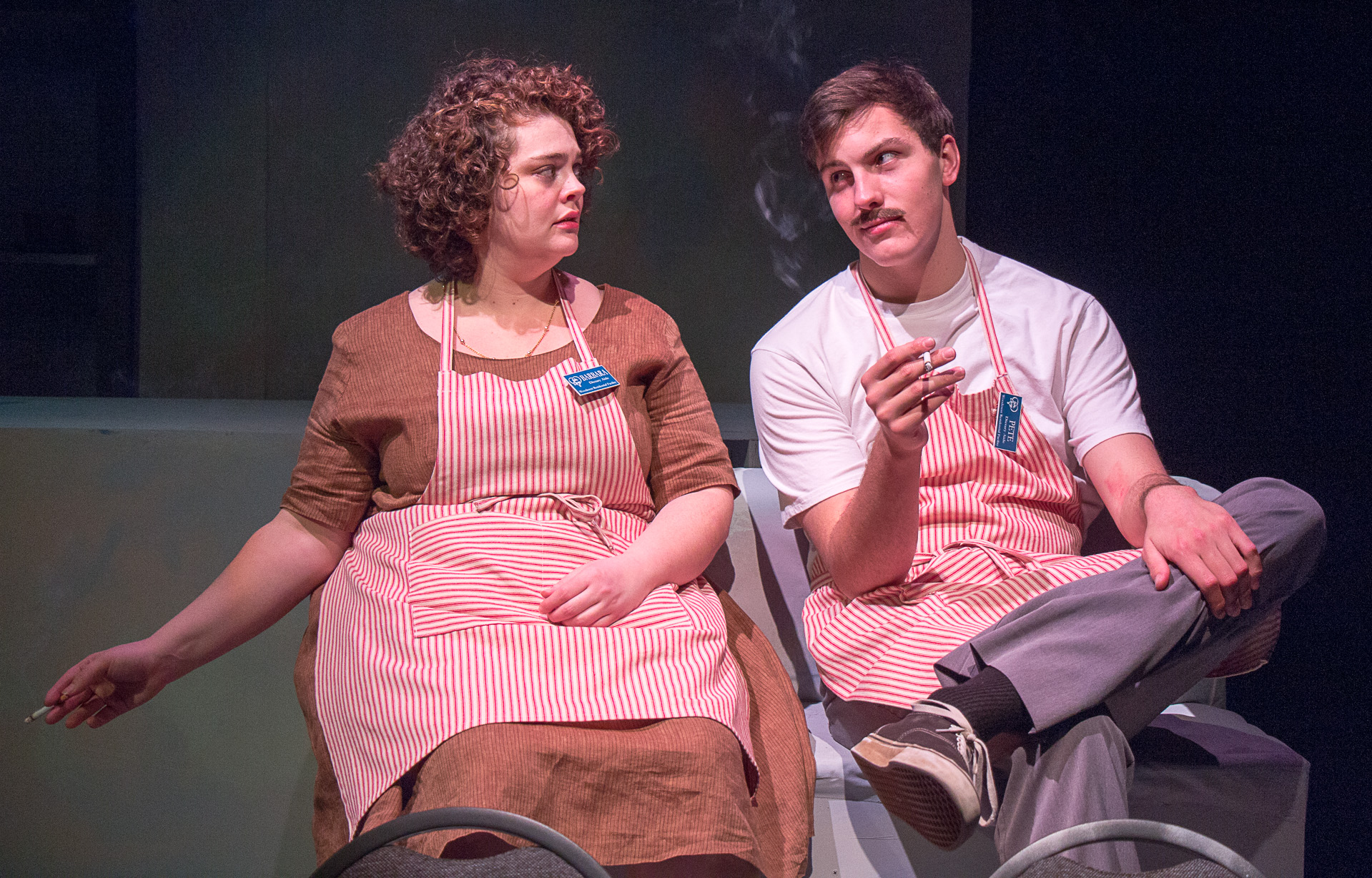 UAF Theatre and Film's production photo of 'Nickel and Dimed' features (left to right) Rachel Blackwell and Ian Hendren.