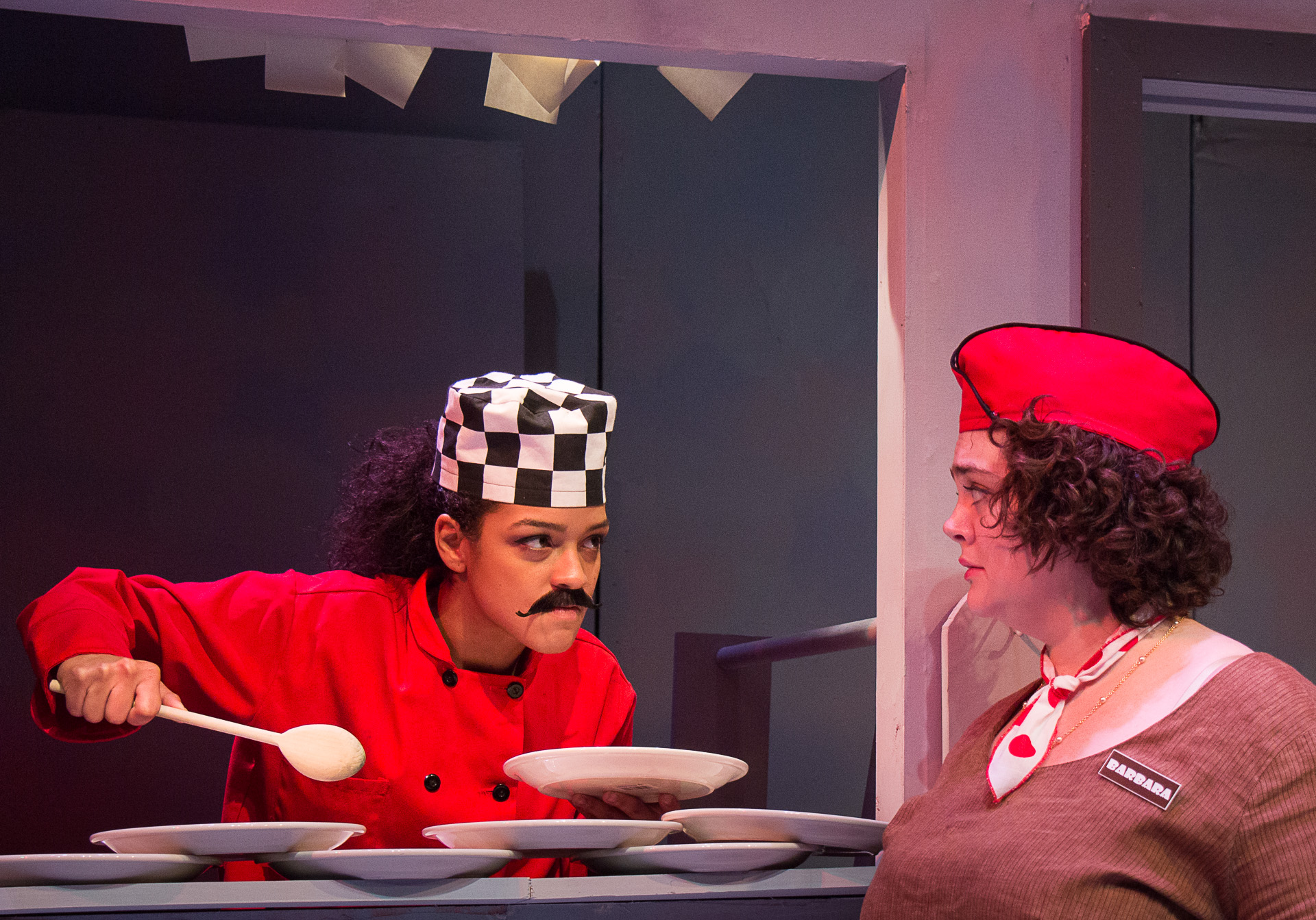 The production photo of 'Nickel and Dimed' by UAF Theatre and Film features (left to right) Nicole Cowans and Rachel Blackwell.
