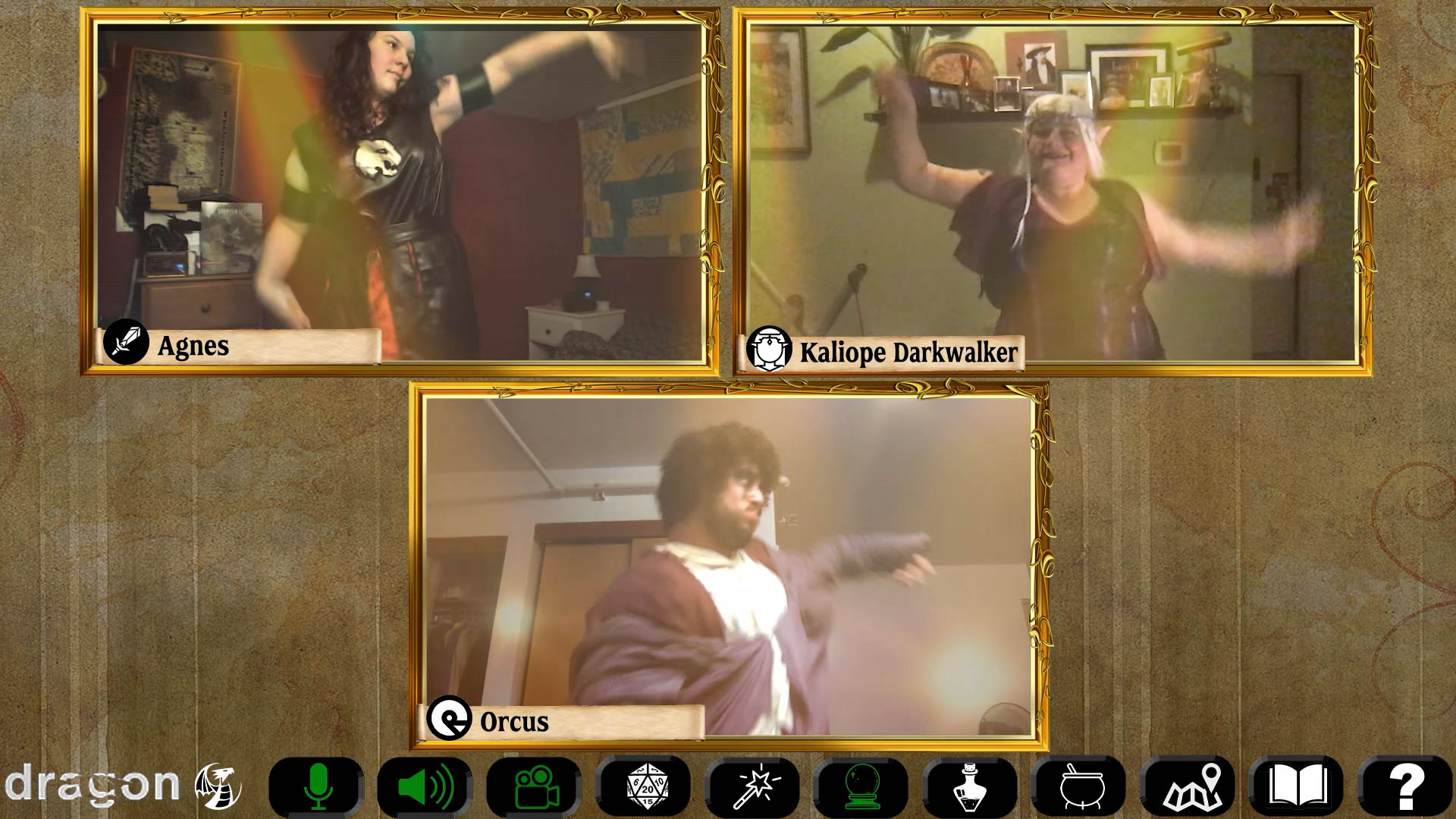 Charles Wolgemuth, Josie Adasiak and Melissa Buchta, in a screen capture from the virtual performance of "She Kills Monsters: Virtual Realm."
