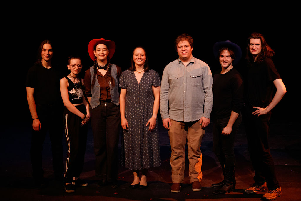 Cast, left to right: Clark Milstead, Bethany Cohen, Ben Hedricks, Alexanna Thomas, Lily Larson, JB Brown, Jaiden Yaskulski.