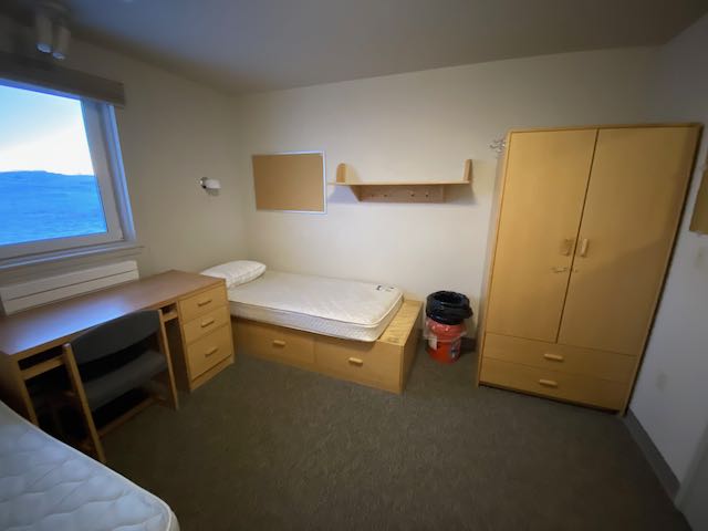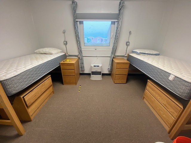 - In 2018, the dorm “Muskox” was constructed with 8 double rooms. Each room is well furnished with 2 twin beds, and plenty of storage to settle for a few weeks. These rooms do not have desks however. The buildings are dry (no running water), but one of the TFS towers (out-houses) is directly adjacent to the building. Muskox is typically used in the shoulder season, but shut down during the winter months.