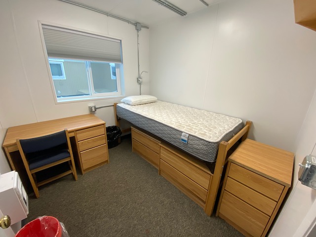 - Dorm “Grayling” also has 8 double rooms, fully furnished with storage and a desk, and is a dry building. This building is also shut down during the winter month.