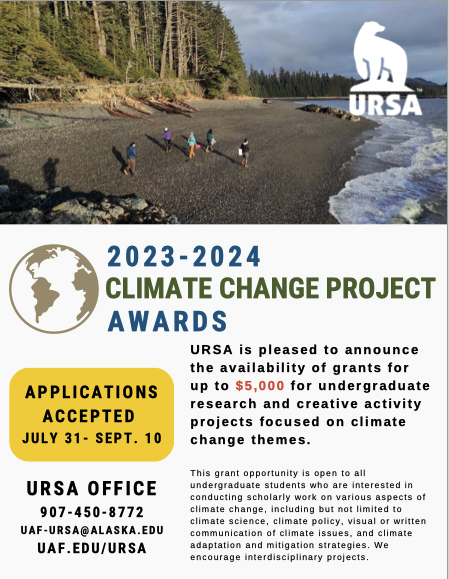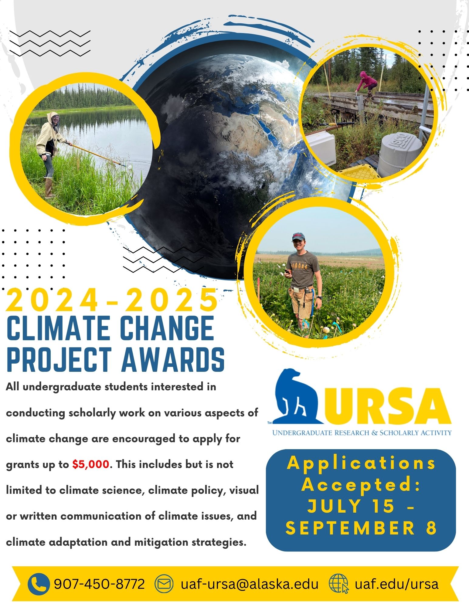 URSA's Climate Change Project Awards provide support for undergraduate research and creative projects focused on various aspects of climate change, including but not limited to climate science, climate policy, visual or written communication of climate issues, and climate adaptation and mitigation strategies. Interdisciplinary projects are strongly encouraged.